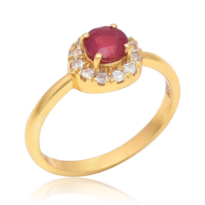 Inel din Argint 925 Placat cu Aur ( 2.2 grame ) cu Rubin Malagasy și Topaz Alb 0.9 Carate