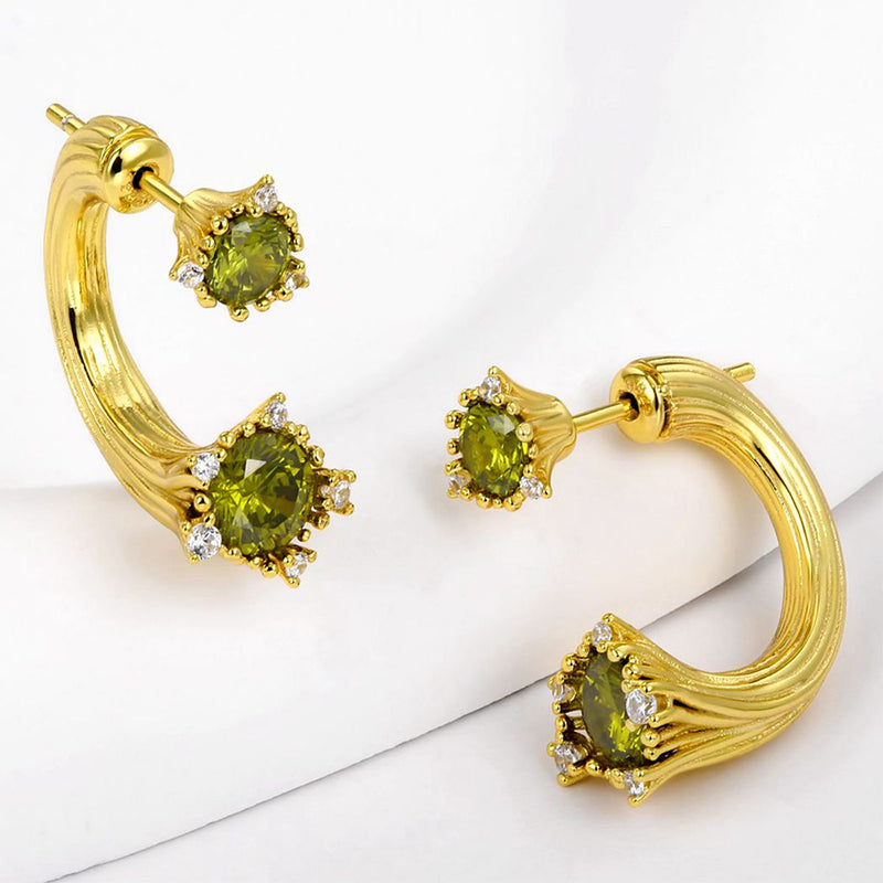 Cercei din Aliaj Placat cu Aur ( 10 grame ) cu Cristal Verde Emporia® și Cristal Alb Emporia®