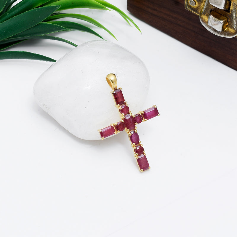 Cruce Pandantiv din Argint 925 Placat cu Aur ( 1.89 grame ) cu Rubin Malagasy 2.7 Carate
