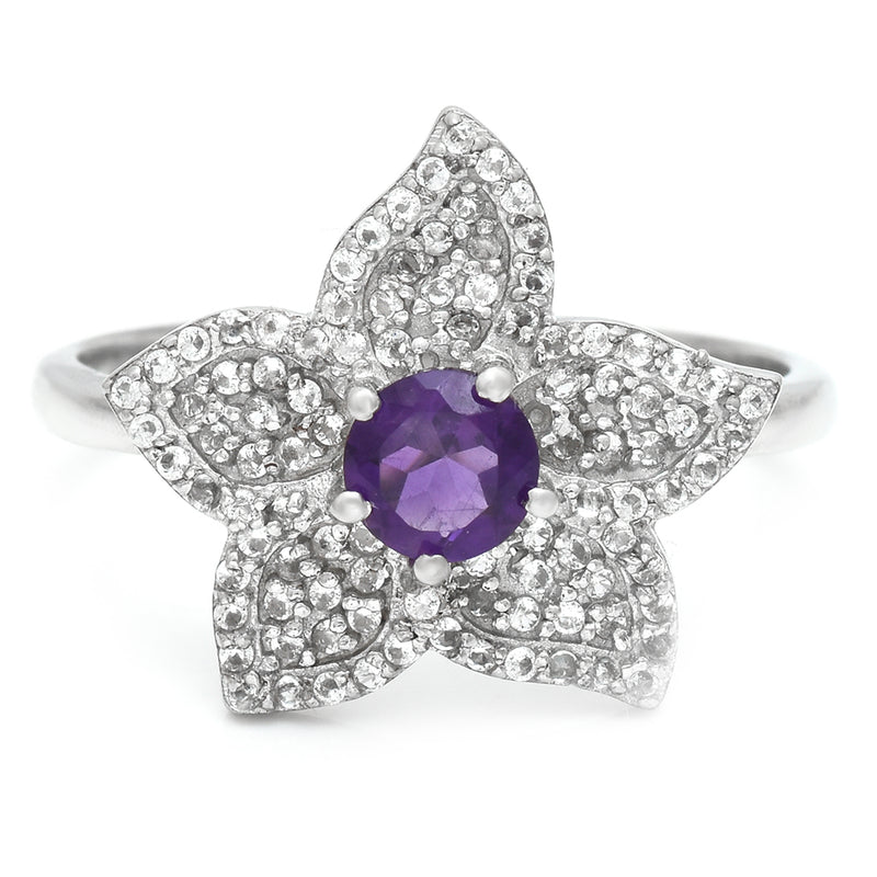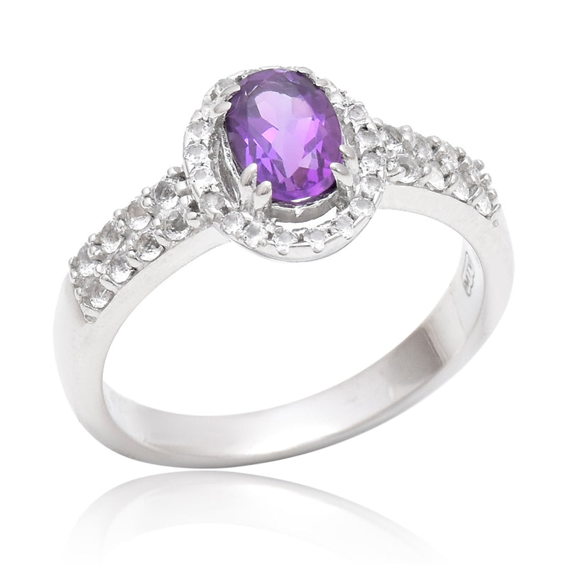 Inel din Argint 925 ( 3.12 grame ) cu Ametist Marocan și Topaz Alb 0.9 Carate