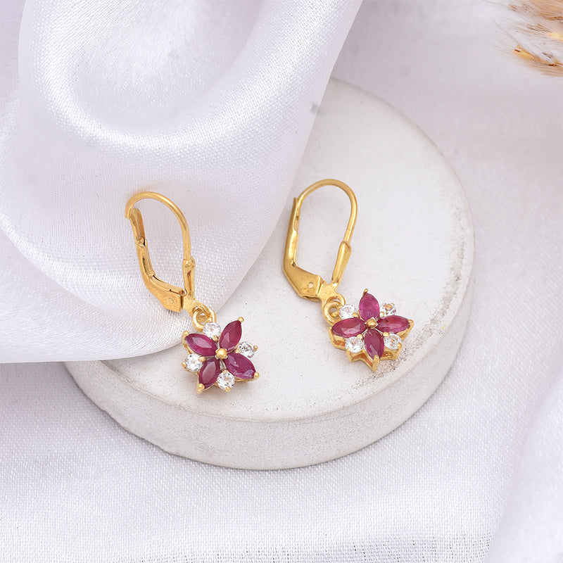 Cercei din Argint 925 Placat cu Aur ( 3.35 grame ) cu Rubin Malagasy 1.35 Carate