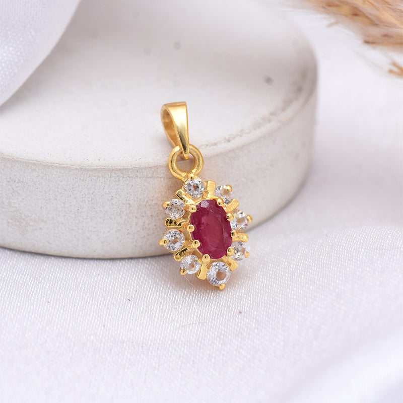 Pandantiv din Argint 925 Placat cu Aur ( 1.29 grame ) cu Rubin Malagasy și Topaz Alb 0.68 Carate
