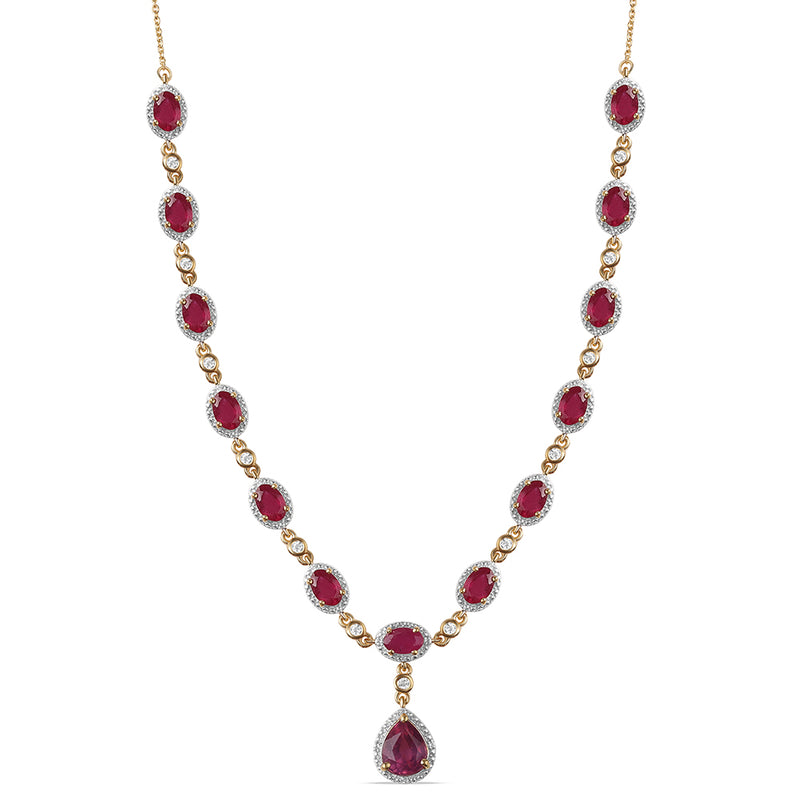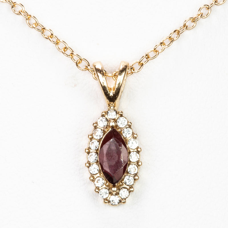 Colier din Aliaj Placat cu Aur ( 5 grame ) cu Rubin și Cristal Alb Emporia® 0.6 Carate ( Colier+Pandantiv )