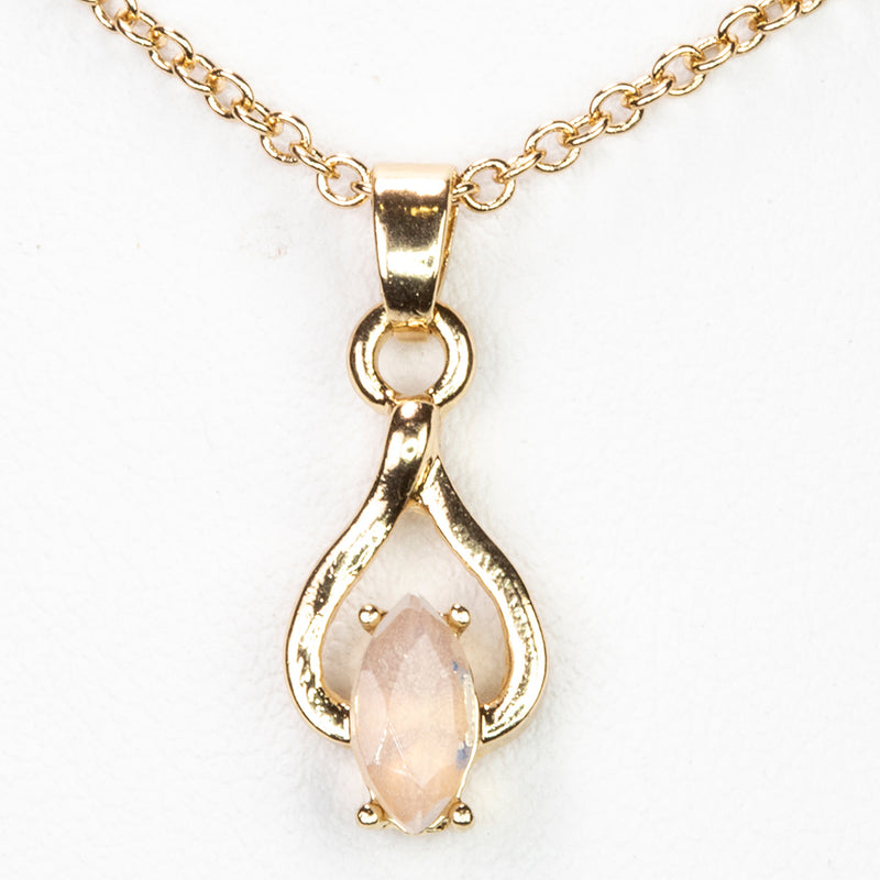 Colier din Aliaj Placat cu Aur ( 5 grame ) cu Piatra Lunii Curcubeu și Cristal Alb Emporia® 2.53 Carate ( Colier+Pandantiv )