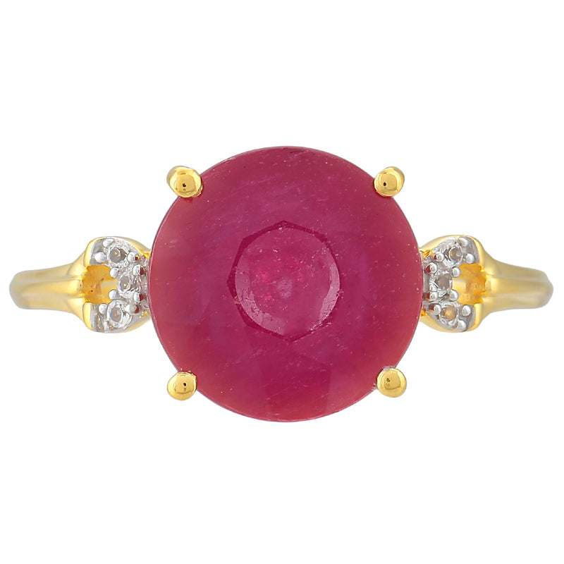 Inel din Argint 925 Placat cu Aur ( 1.75 grame ) cu Rubin Thailandez și Topaz Alb 4.07 Carate