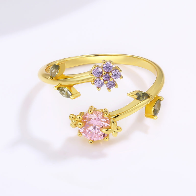 Inel din Aliaj Placat cu Aur ( 10 grame ) cu Cristal Roz Emporia® și Cristal Violet Emporia®
