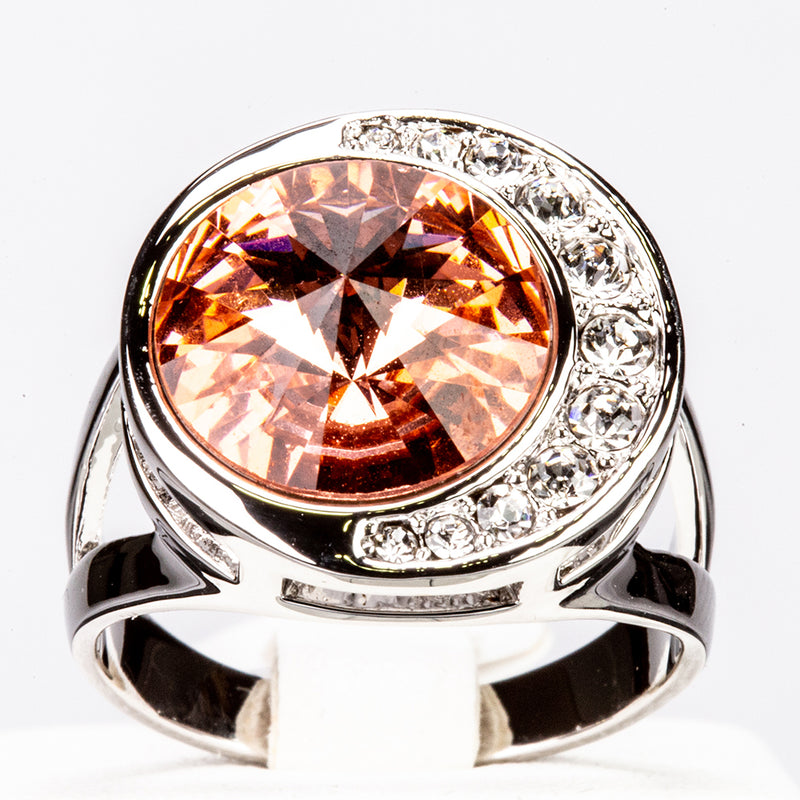 Inel din Aliaj Placat cu Aur Alb cu Cristal Roșu Emporia®