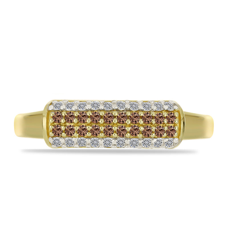 Inel din Argint 925 Placat cu Aur ( 2.52 grame ) cu Diamant de culoarea Șampaniei și Diamant Alb 0.32 Carate