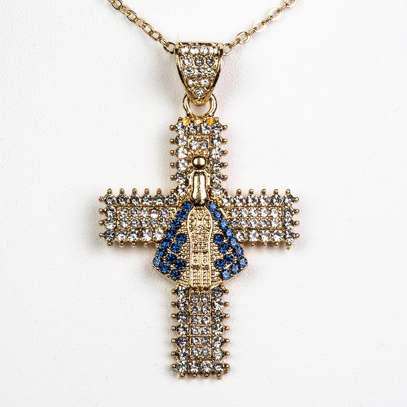 Cruce Colier din Aliaj Placat cu Aur ( 10.5 grame ) cu Cristal Albastru Emporia® și Cristal Alb Emporia® 7.41 Carate