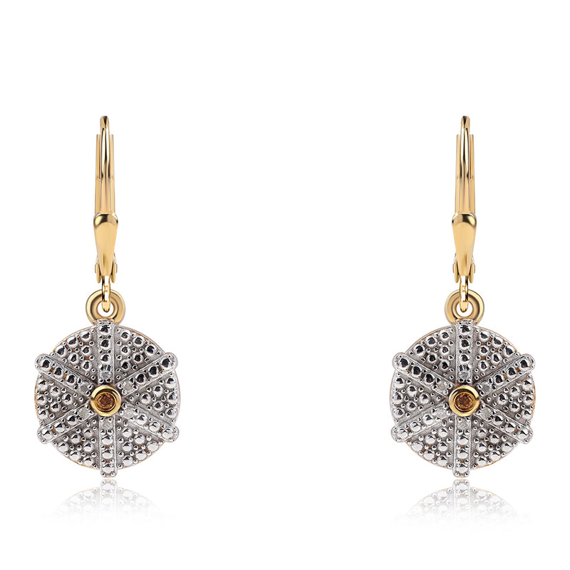 Cercei din Argint 925 Placat cu Aur ( 3.94 grame ) cu Diamant Roșu și Diamant Alb 0.11 Carate