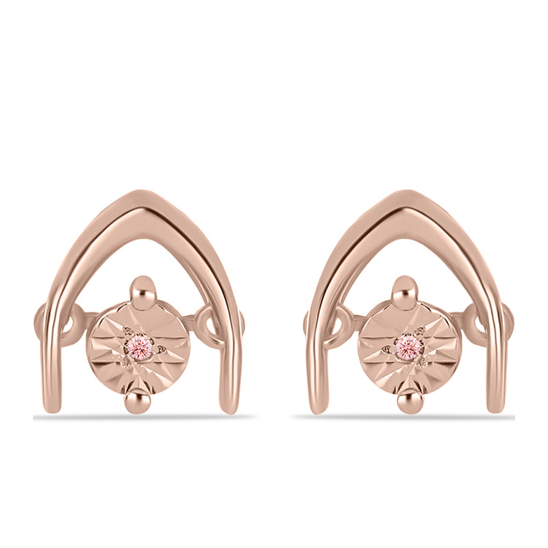 Cercei din Argint 925 Placat cu Aur Roz ( 1.63 grame ) cu Diamant Dansantor Roz 0.01 Carate