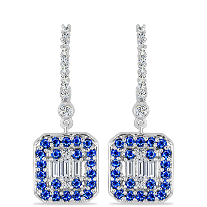 Cercei din Argint 925 ( 6.46 grame ) cu Safir Albastru Australian și Topaz Alb 3.23 Carate