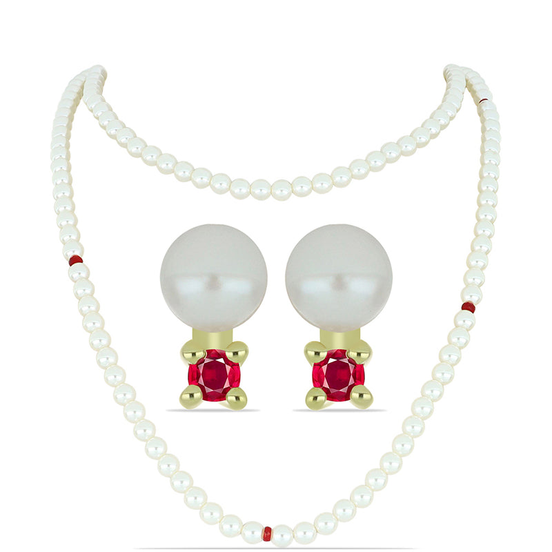 Set din Argint 925 Placat cu Aur ( 0.95 grame ) cu Perlă de Apă Dulce Albă și Rubin Malagasy 176.58 Carate ( Colier+Cercei )