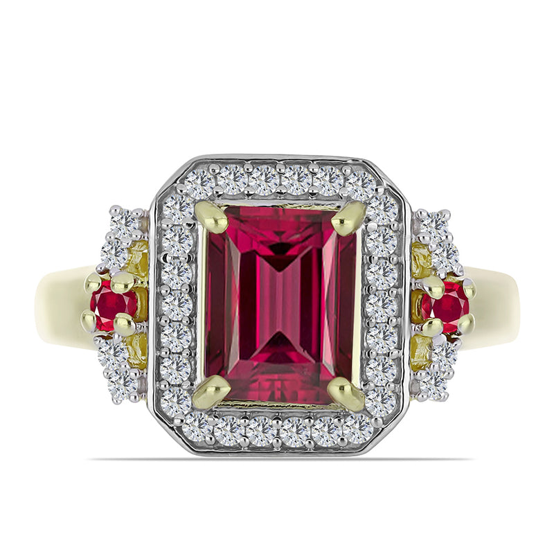 Inel din Argint 925 Placat cu Aur ( 2.07 grame ) cu Rubin Mozambic și Topaz Alb 1.49 Carate