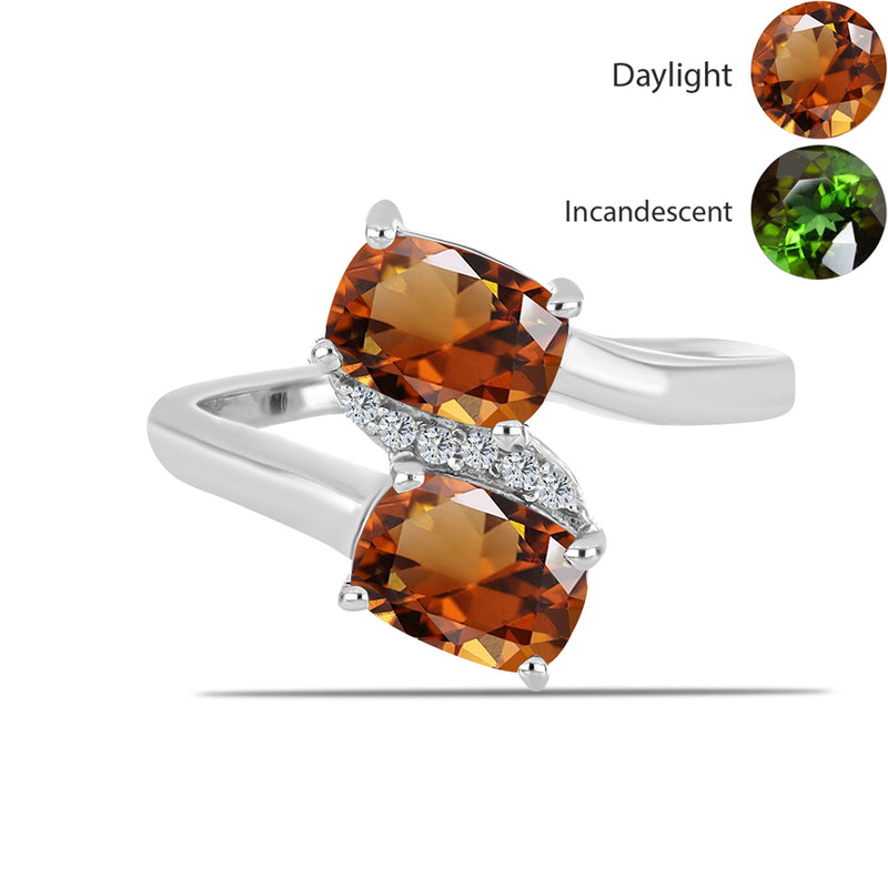 Inel din Argint 925 ( 2.77 grame ) cu Zultanit Anatolian Certificat cultivat în laborator și Topaz Alb 2.23 Carate