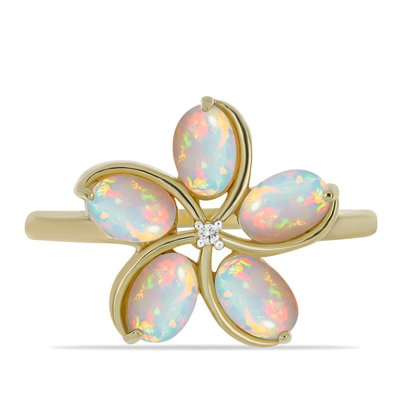 Inel din Argint 925 Placat cu Aur ( 3.93 grame ) cu Opal Etiopian Lega Dembi și Topaz Alb 1.37 Carate