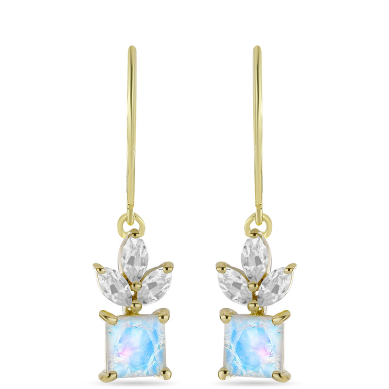 Cercei din Argint 925 Placat cu Aur ( 2.79 grame ) cu Piatra Lunii Curcubeu și Topaz Alb 3.12 Carate