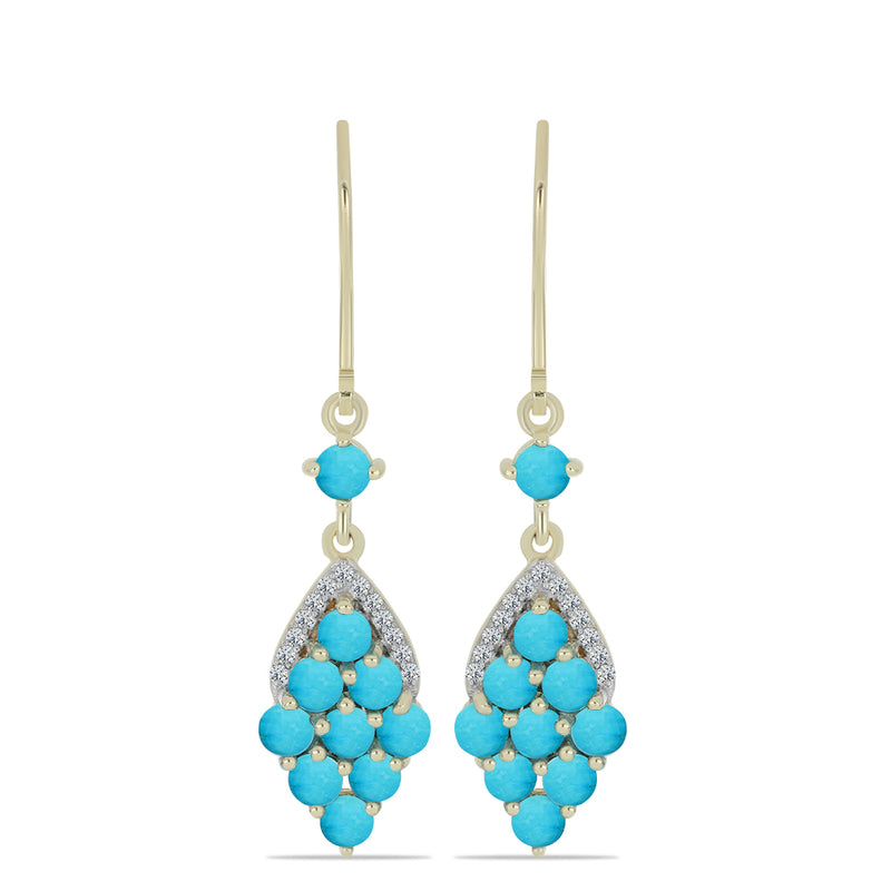 Cercei din Argint 925 Placat cu Aur ( 3.55 grame ) cu Turcoaz ”Frumoasa Adormită” și Topaz Alb 2.47 Carate