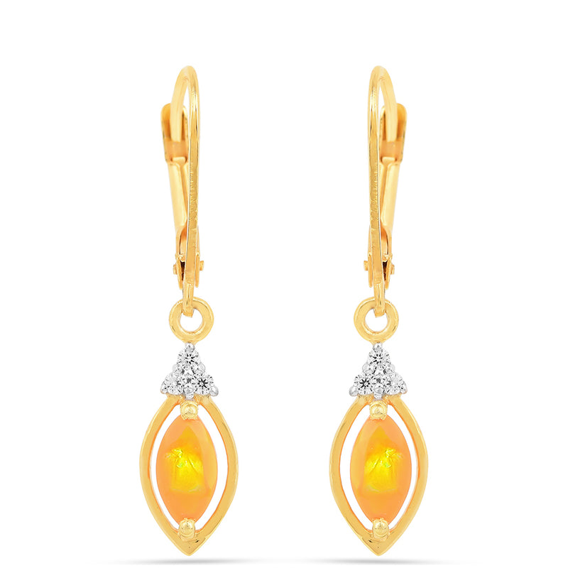 Cercei din Argint 925 Placat cu Aur ( 1.84 grame ) cu Opal de Foc și Zircon Alb 0.74 Carate