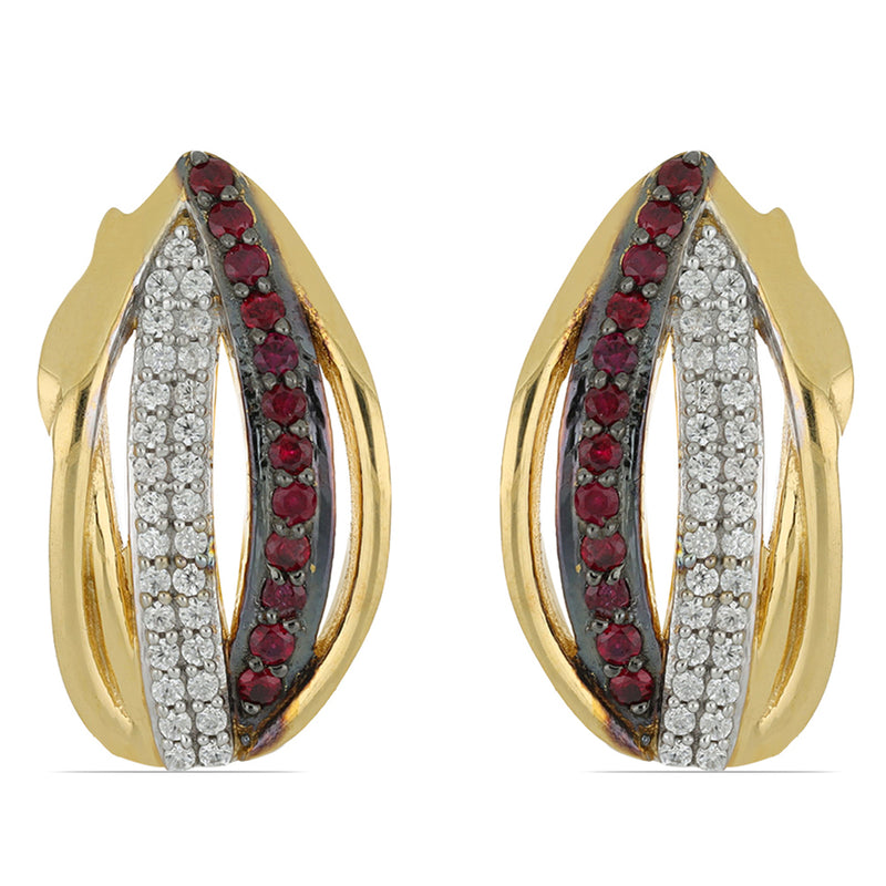 Cercei din Argint 925 Placat cu Aur ( 7.22 grame ) cu Rubin Malagasy și Zircon Alb Natural 1.78 Carate
