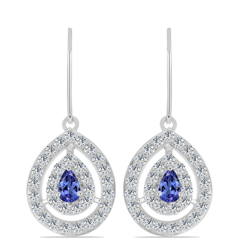 Cercei din Argint 925 ( 3.57 grame ) cu Tanzanit și Topaz Alb 3.44 Carate
