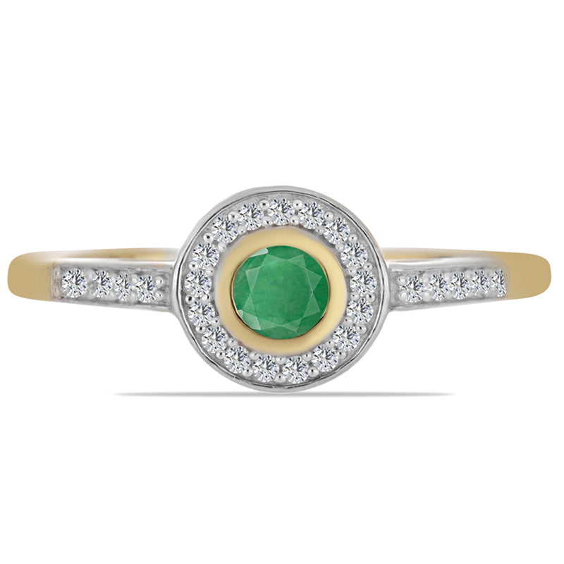 Inel din Argint 925 Placat cu Aur ( 1.55 grame ) cu Smarald Brazilian și Zircon Alb 0.32 Carate