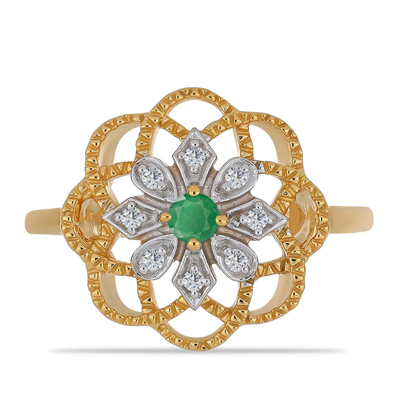 Inel din Argint 925 Placat cu Aur ( 2.14 grame ) cu Smarald Brazilian și Zircon Alb 0.57 Carate