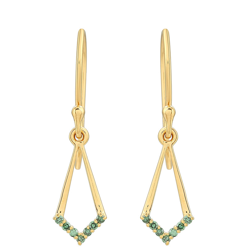 Cercei din Argint 925 Placat cu Aur ( 1.74 grame ) cu Diamant Verde 0.17 Carate