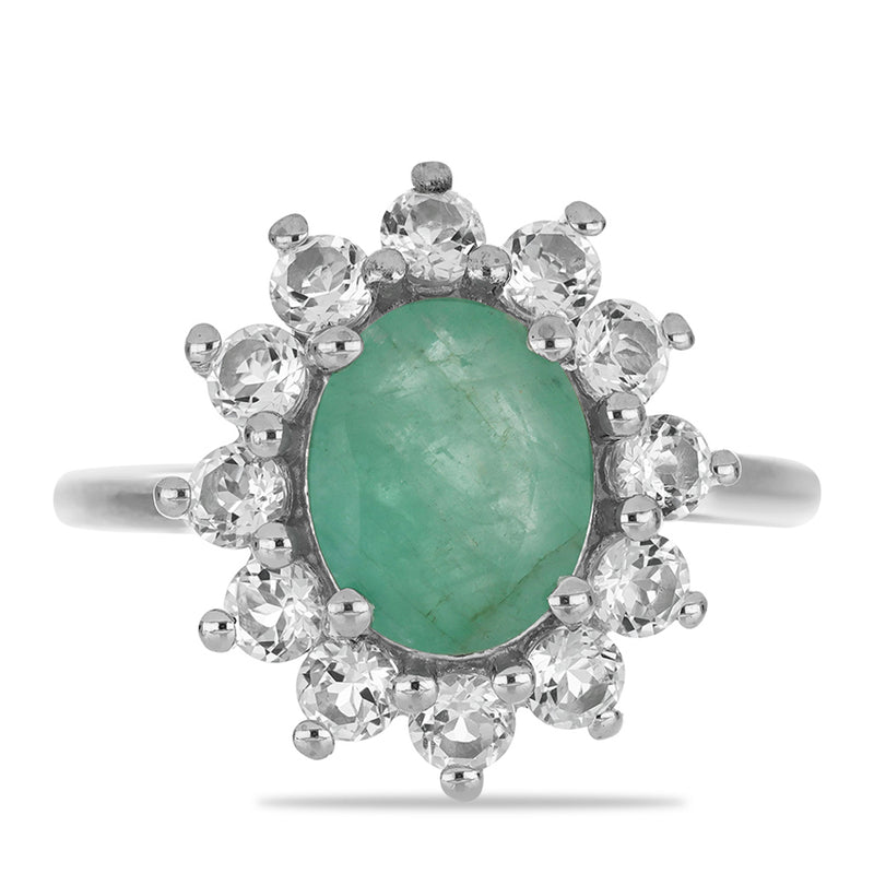 Inel din Argint 925 ( 3.09 grame ) cu Smarald Brazilian și Topaz Alb 3.99 Carate