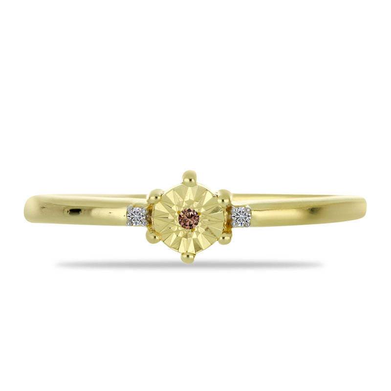 Inel din Argint 925 Placat cu Aur ( 1.73 grame ) cu Diamant de culoarea Șampaniei și Diamant Alb 0.02 Carate