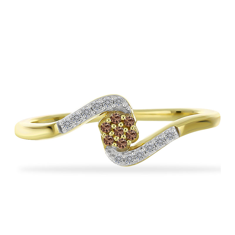Inel din Argint 925 Placat cu Aur ( 2.01 grame ) cu Diamant de culoarea Șampaniei și Diamant Alb 0.14 Carate