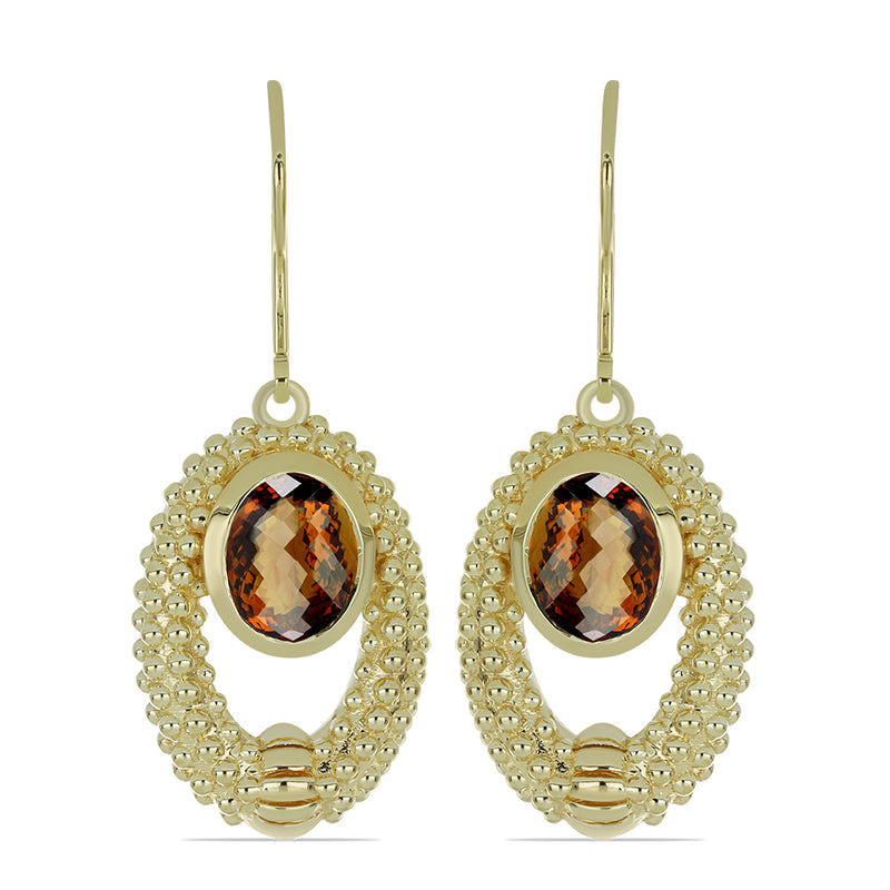 Cercei din Argint 925 Placat cu Aur ( 6.52 grame ) cu Cuarț Coniac 3.23 Carate
