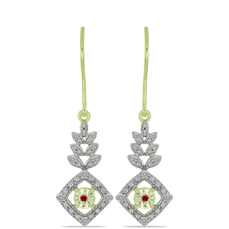 Cercei din Argint 925 Placat cu Aur ( 3.53 grame ) cu Diamant Roșu și Diamant Alb 0.19 Carate