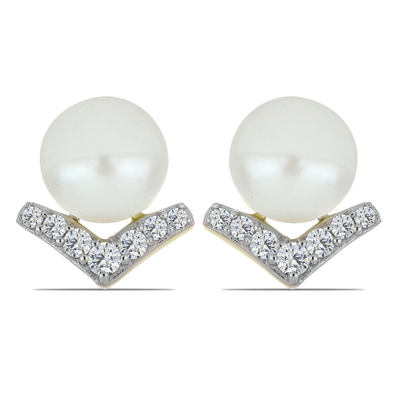 Cercei din Argint 925 Placat cu Aur ( 1.45 grame ) cu Perlă de Apă Dulce Albă și Topaz Alb 5.91 Carate
