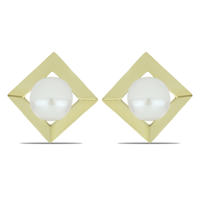 Cercei din Argint 925 Placat cu Aur ( 1.91 grame ) cu Perlă de Apă Dulce Albă 2.41 Carate