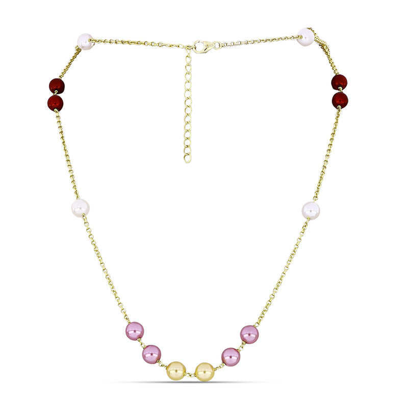 Colier din Argint 925 Placat cu Aur ( 3.19 grame ) cu Perlă de Apă Dulce Albă și Perlă de Apă Dulce de Culoarea Piersicii 19.97 Carate