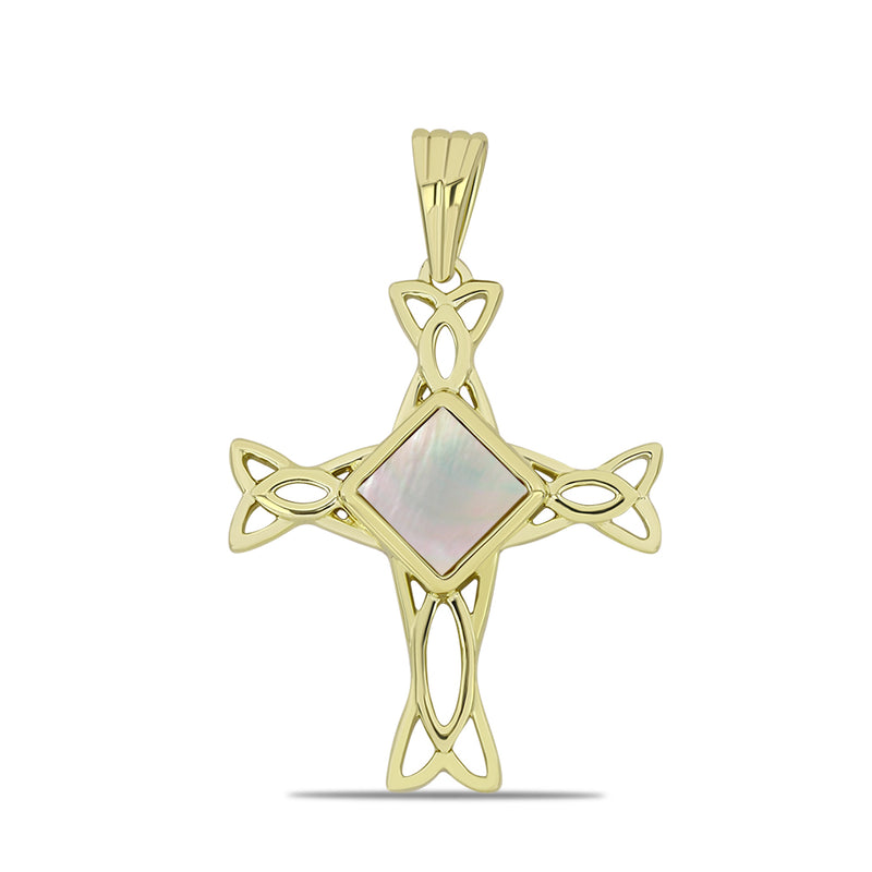 Cruce Pandantiv din Argint 925 Placat cu Aur ( 2.96 grame ) cu Sidef 1.13 Carate