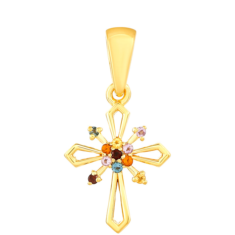 Cruce Pandantiv din Argint 925 Placat cu Aur ( 1.68 grame ) cu Ametist și Citrin Madeira 0.11 Carate