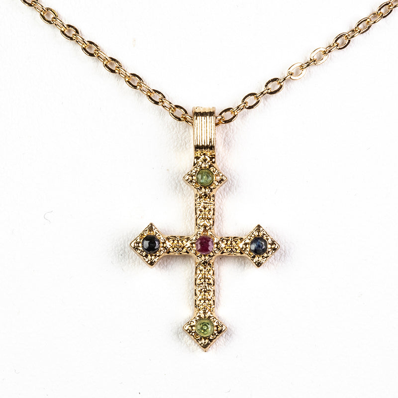 Cruce Colier din Aliaj Placat cu Aur ( 28.75 grame ) cu Rubin Birmanez și Smarald Brazilian 0.23 Carate ( Colier+Pandantiv )