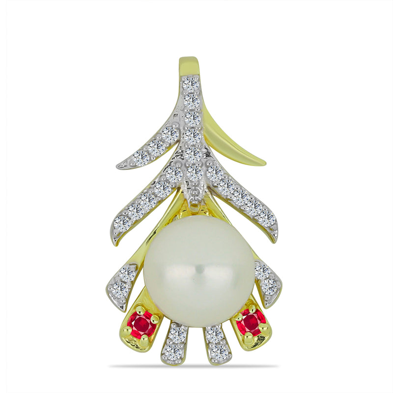 Pandantiv din Argint 925 Placat cu Aur ( 1.92 grame ) cu Perlă de Apă Dulce Albă și Rubin Malagasy 3.12 Carate