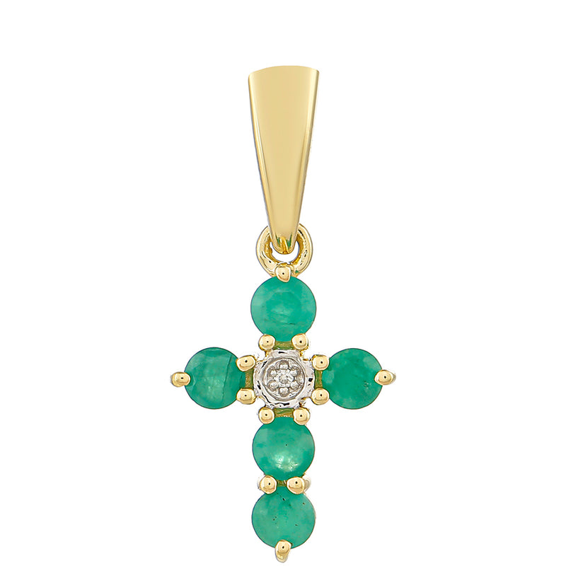 Cruce Pandantiv din Aur de 9K ( 0.86 grame ) cu Smarald Brazilian și Zircon Natural 0.31 Carate