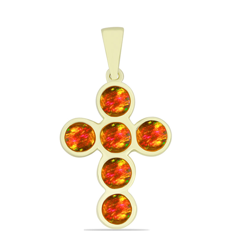 Cruce Pandantiv din Argint 925 Placat cu Aur ( 1.66 grame ) cu Opal de Foc American 0.21 Carate