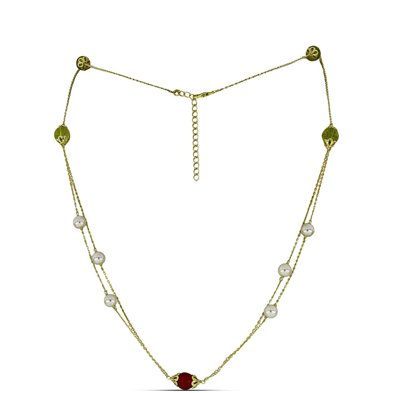 Colier din Argint 925 Placat cu Aur ( 3.61 grame ) cu Citrin Ural și Carneol 18 Carate