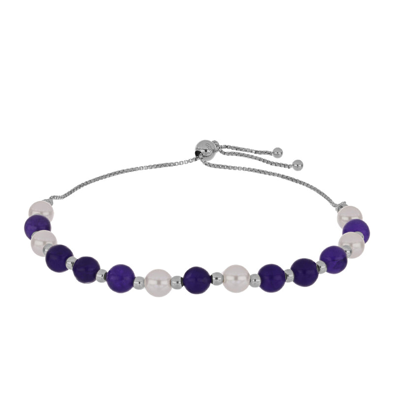 Brățară din Argint 925 ( 2.42 grame ) cu Jad Violet și Perlă de Apă Dulce Albă 23.14 Carate