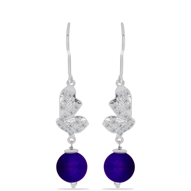 Cercei din Argint 925 ( 3.25 grame ) cu Jad Violet și Topaz Alb 7.93 Carate