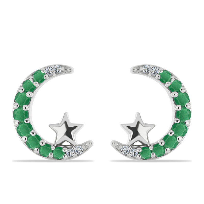 Cercei din Argint 925 ( 2.03 grame ) cu Smarald Brazilian și Topaz Alb 0.37 Carate