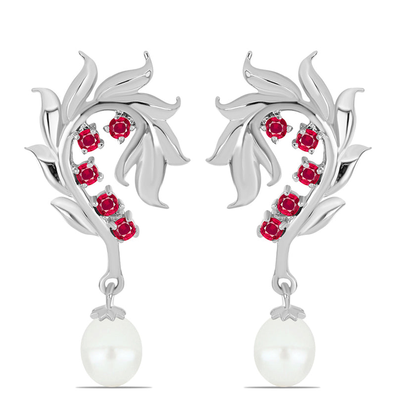 Cercei din Argint 925 ( 4.74 grame ) cu Rubin Malagasy și Perlă de Apă Dulce Albă 4.25 Carate