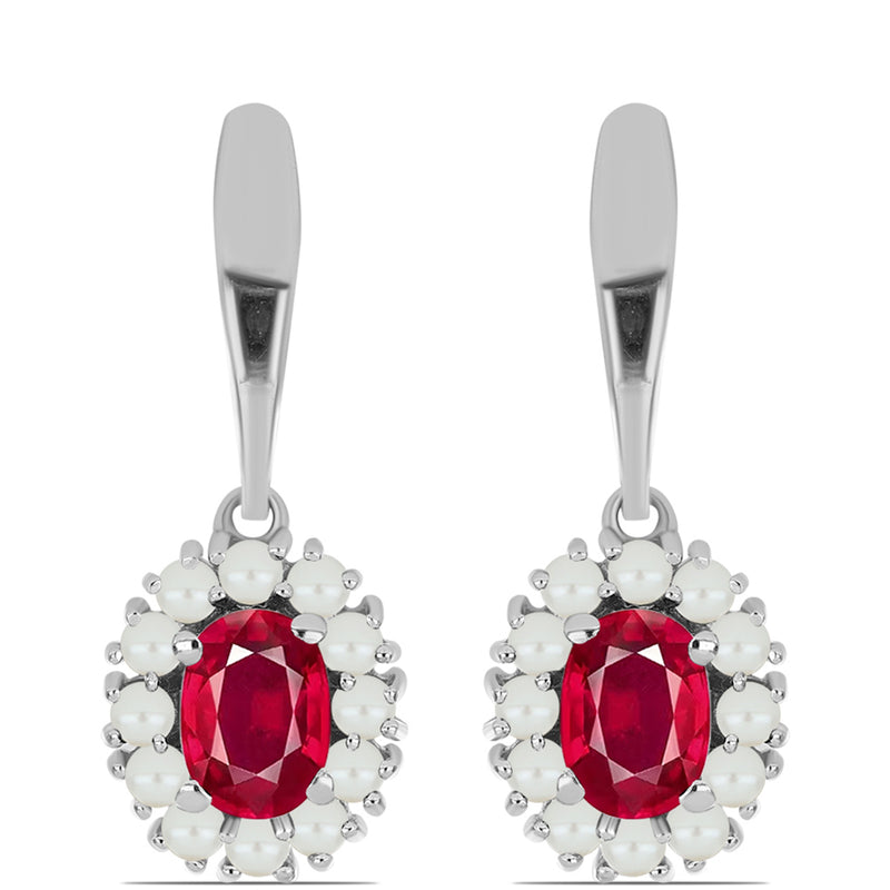 Cercei din Argint 925 ( 3.67 grame ) cu Rubin Malagasy și Perlă de Apă Dulce Albă 3.2 Carate
