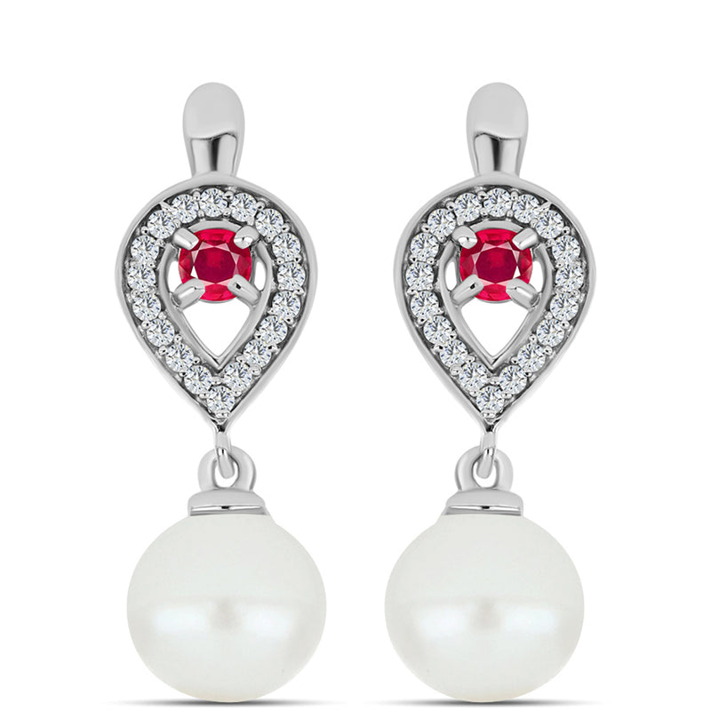 Cercei din Argint 925 ( 3.16 grame ) cu Rubin Malagasy și Perlă de Apă Dulce Albă 7.36 Carate