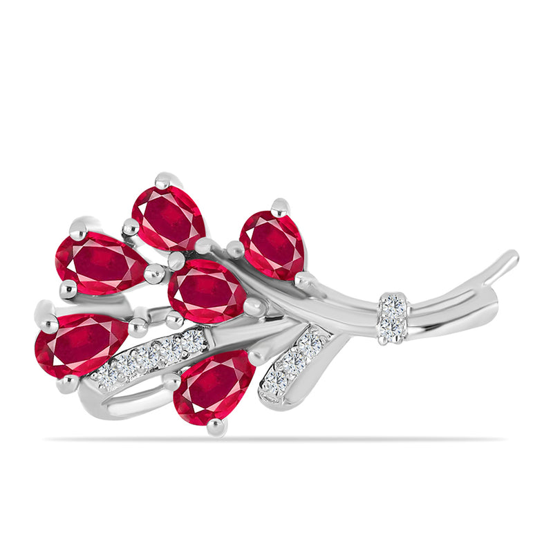 Broşă din Argint 925 ( 2.34 grame ) cu Rubin Malagasy și Topaz Alb 1.76 Carate